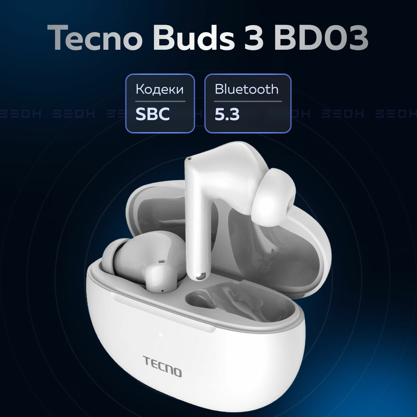 Наушники Беспроводные наушники TECNO Buds 3 RU, белый с системой активного шумоподавления и защитой от влаги