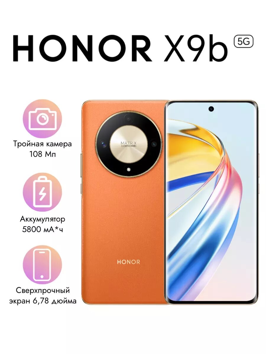 HONOR X9b 12Gb/256Gb Dual 5G оранжевый (Qualcomm Snapdragon 6 Gen1) EAC 32 256 ₽ Подробнее