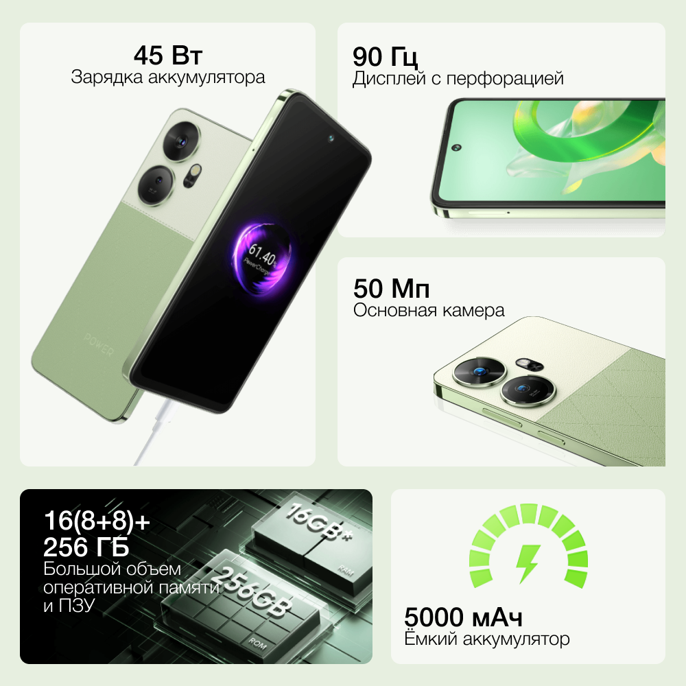 Смартфон ITEL P55+ (P663LN) 256+8 Royal Green зелёный