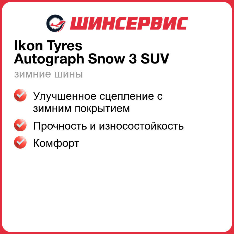 Шины автомобильные 255 50 20 109 R Autograph Snow 3 SUV Зимняя Производитель Ikon Tyres 23 314 ₽ Подробнее