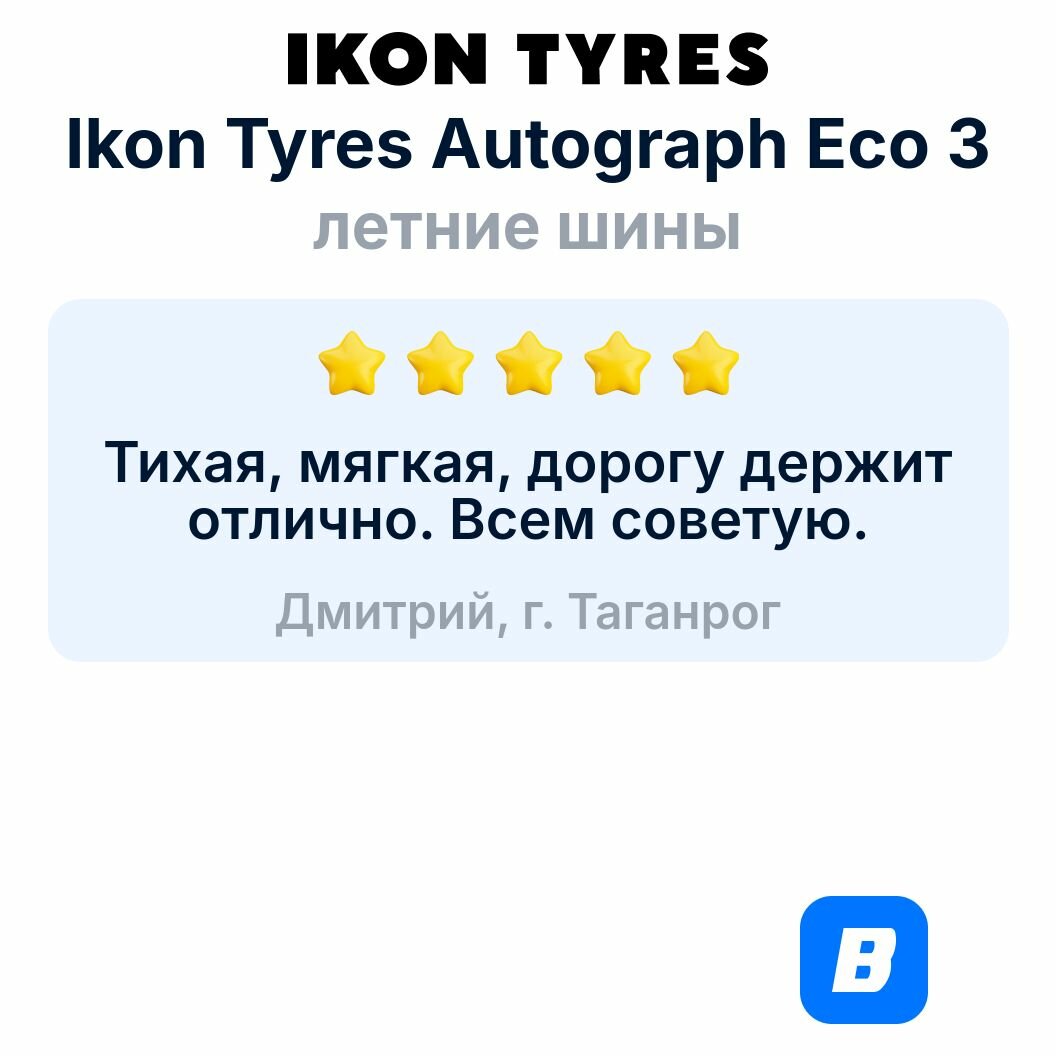 ikon tyres 215/60/16 v 99 ikon autograph eco 3 xl 10 850 ₽ Подробнее