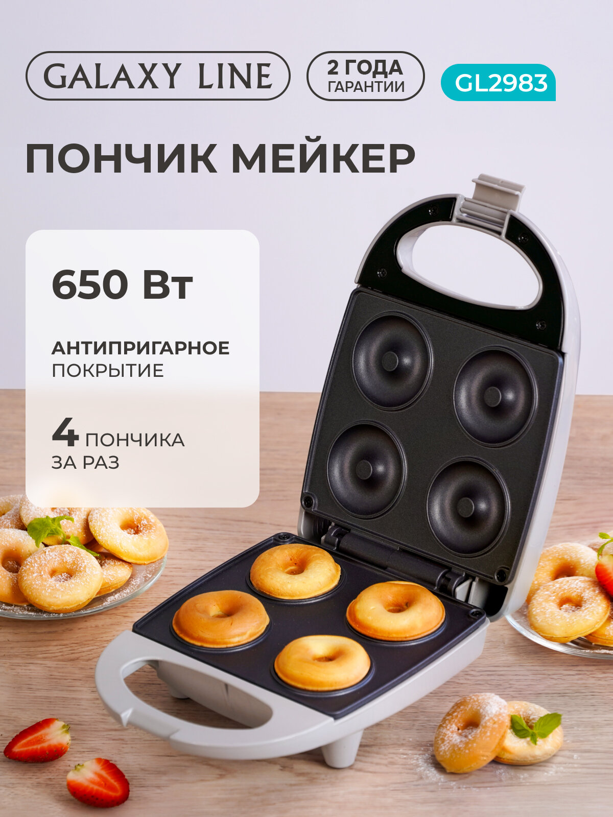 Йогуртницы \/ мороженицы Электровафельница GALAXY LINE GL2983, для пончиков, антипригарное покрытие