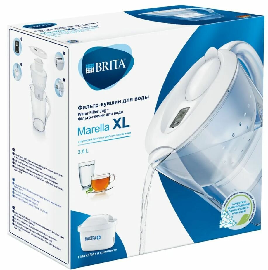 Фильтры для воды Фильтр для воды кувшин Брита Marella XL 3.5 белый с 1 шт сменный картридж для воды Brita MAXTRA+ Универсальный