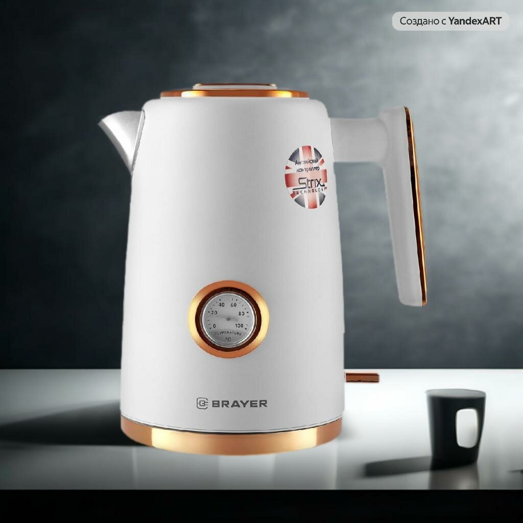 Электрочайники Чайник электрический 1,7 л, BRAYER BR1055 с термометром, белый/золотистый