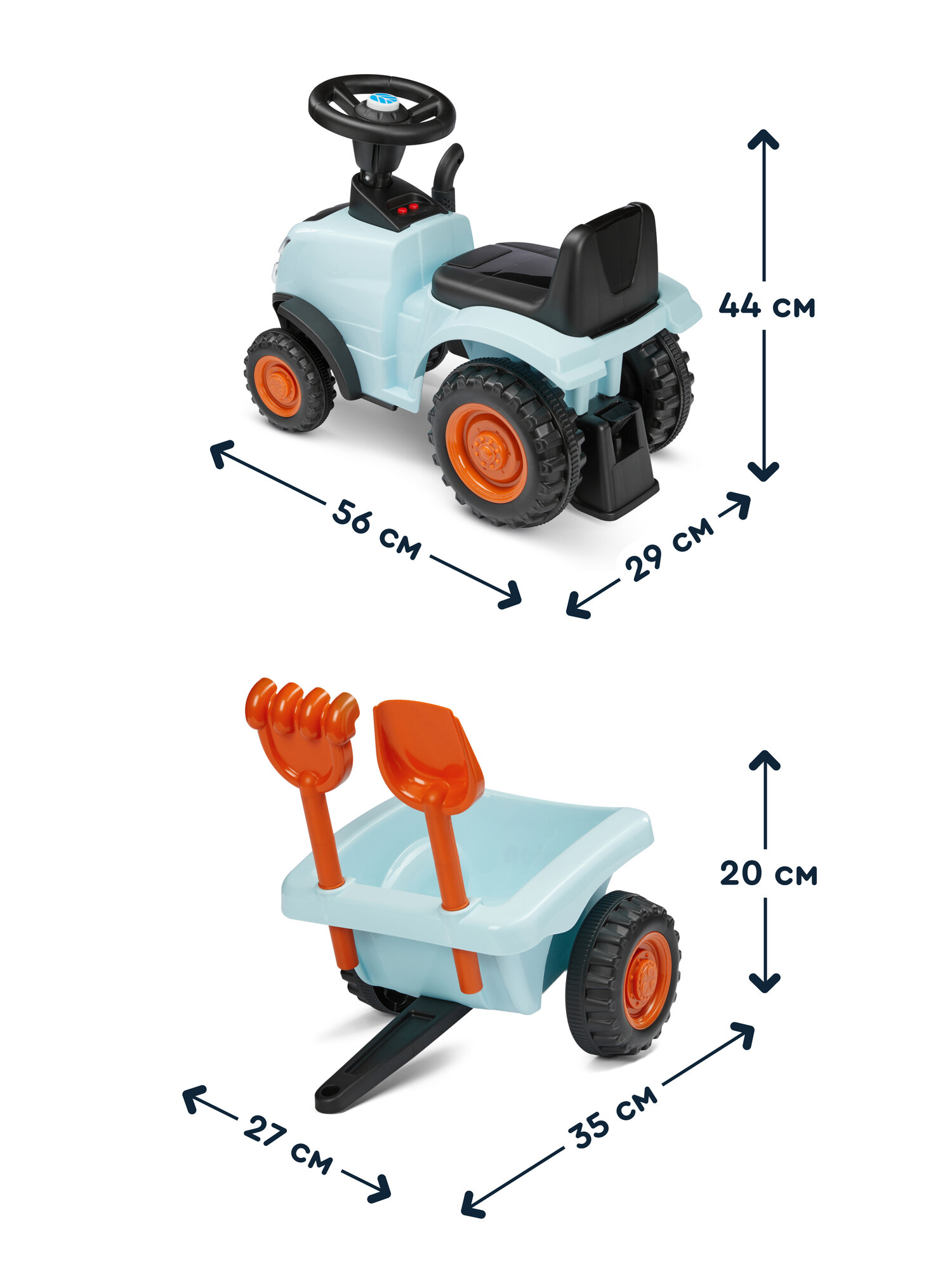 Толокары и каталки Каталка-толокар пушкар трактор с прицепом JUNION Laslo, световые и звуковые эффекты, цвет: голубой