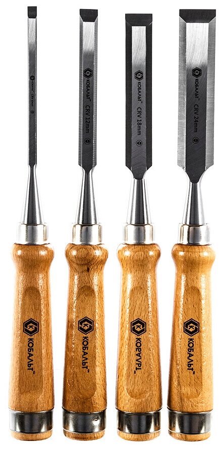 Набор инструментов Кобальт Набор стамесок плоских: 6, 12, 18, 24x140 мм, Cr-v, деревянная рукоятка 4 шт блистер 245-879 .