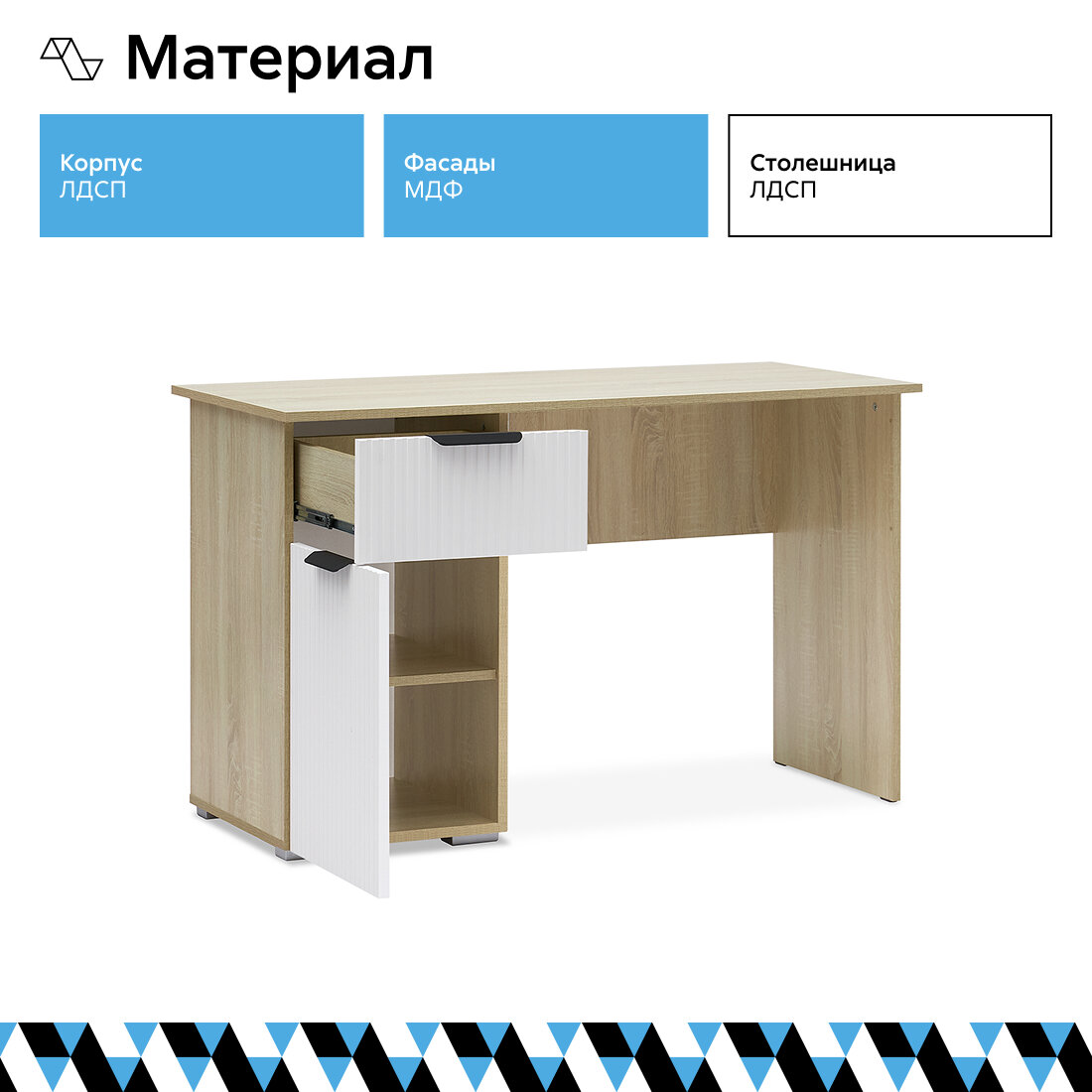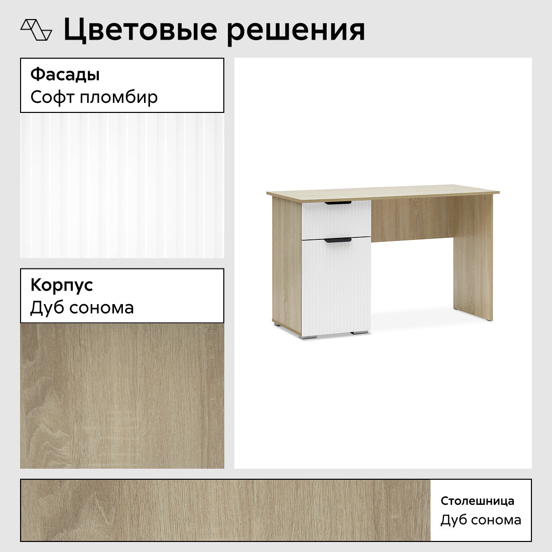 Офисные столы Стол письменный с тумбой Нонтон Норд Line дуб сонома / софт пломбир, 120x57x75 см