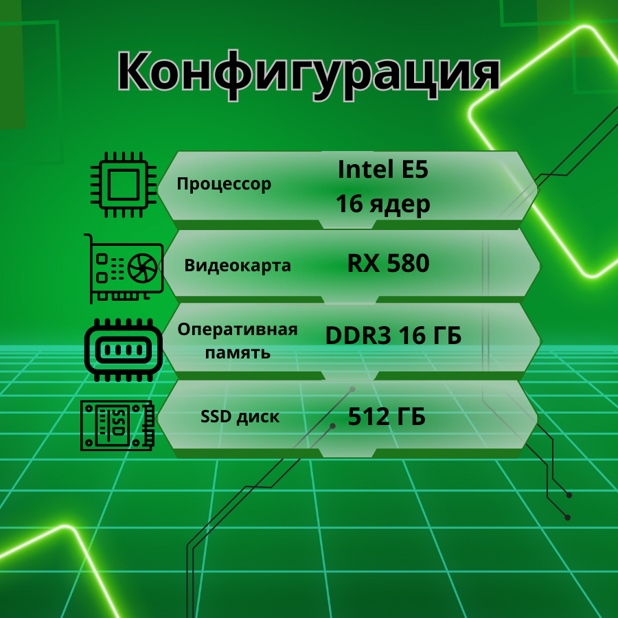 Персональные компьютеры Компьютер игровой - intel E5/RX-580-8G/16GB/SSD-512/Монитор 24"