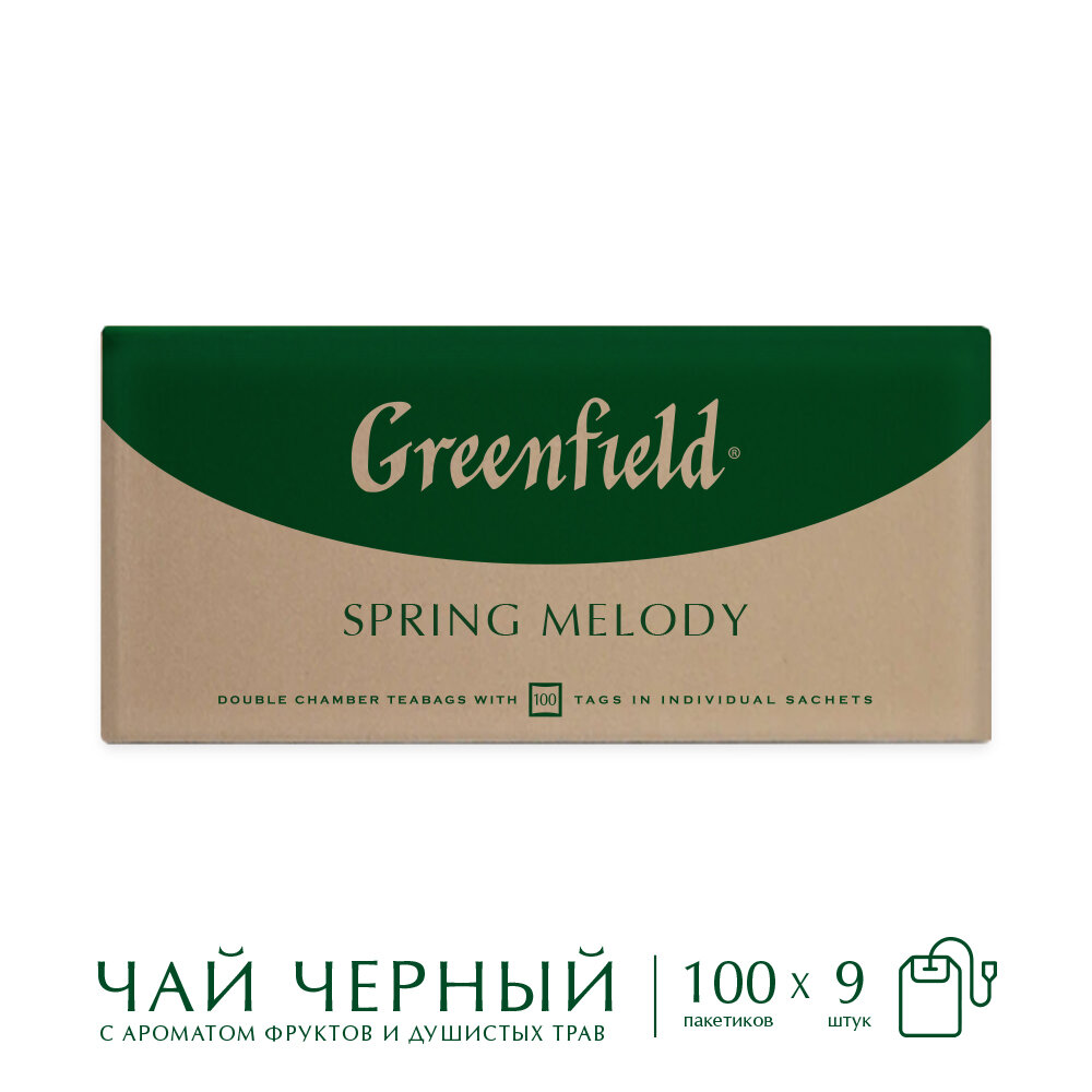 Матрасы Чай GREENFIELD Spring Melody пак. черн. аром. перс. с добав. мята,чбрц (1.50гx100п) картон double sachet 9 упаковок по 150 гр.