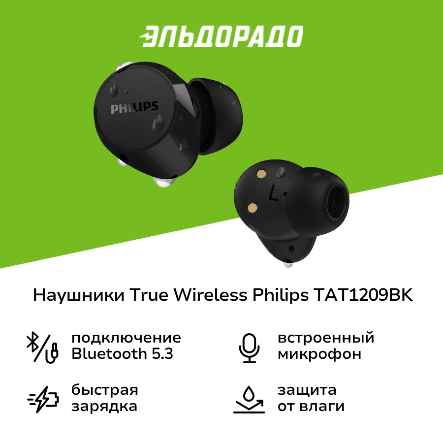 Наушники Philips TWS TAT1209 Black 1 999 ₽ Подробнее