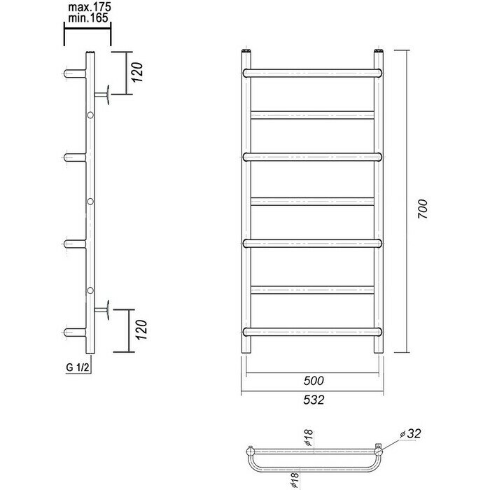 Полотенцесушитель водяной Domoterm Орфей П7 500*700 хром 570 Вт