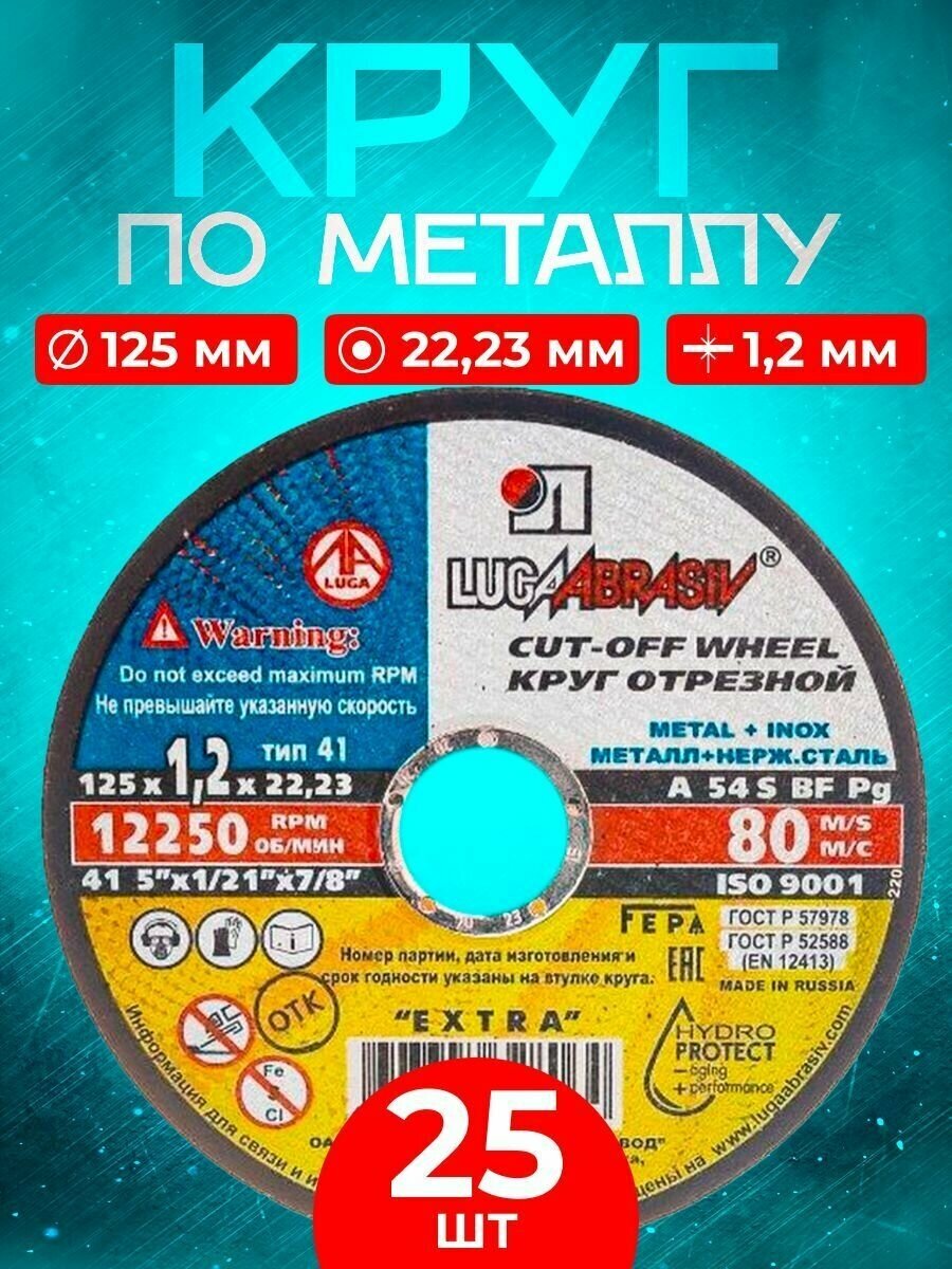 Круг отрезной по металлу 125*2.5*22.23 Luga Abrasiv (25 шт.)