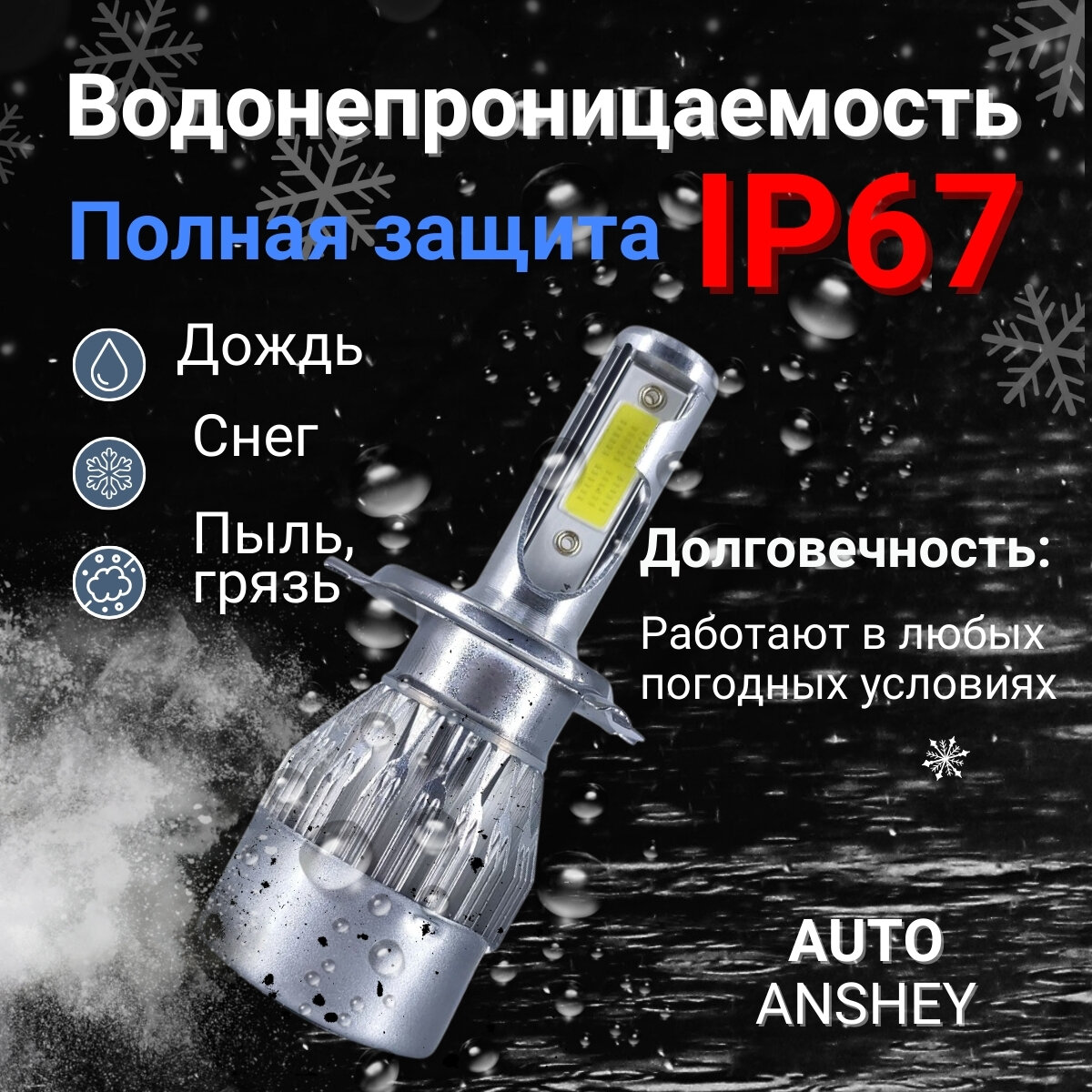 Автолампы Светодиодные лампы Anshey AUTO LED C6 H4, холодный белый, 36 W, 2 шт