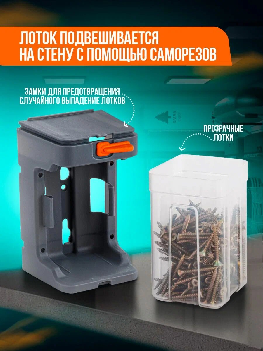Лоток для метизов подвесной с крепежом большой серо-оранжевый / 12ПлР 450 ₽ Подробнее