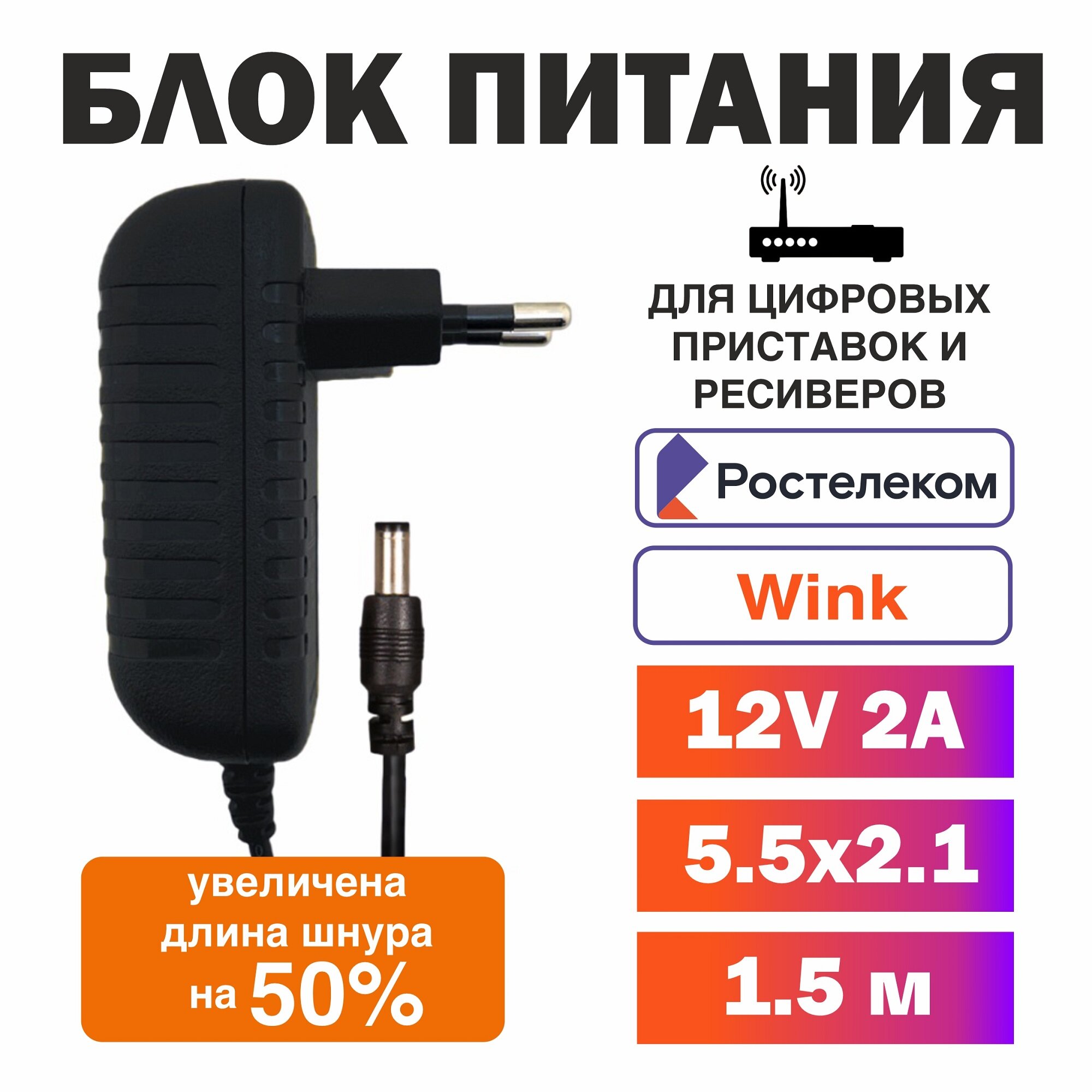 Блоки питания Блок питания универсальный 12В 2A REZER для Ростелеком, Триколор , разъем 5.5х2.1 длина шнура 1,5 метра