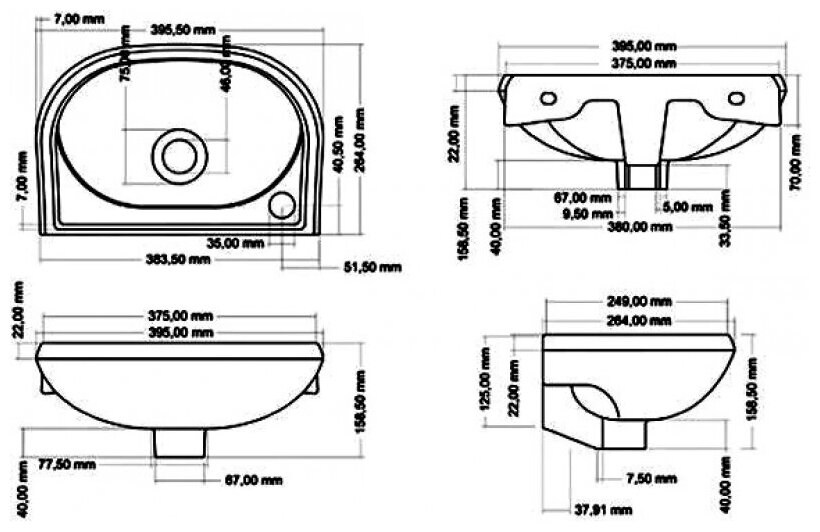 | Тип монтажа | подвесной / накладной на тумбу / накладной на столешницу |