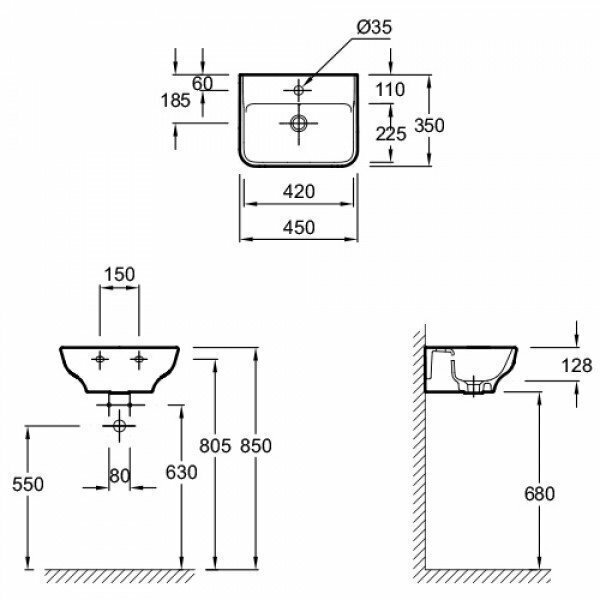 Умывальники Раковина подвесная Jacob Delafon STRUKTURA EGH112-00 45