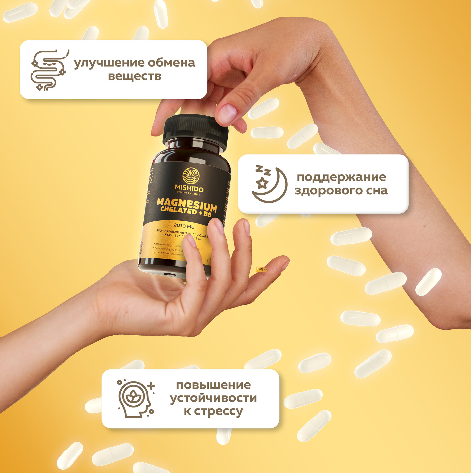 Магний хелат, магнезиум + витамин B6 Б6 MISHIDO 120 капсул Magnesium БАД Комплекс витаминов для сердца, нервной системы, от стресса, судорог 804 ₽ Подробнее