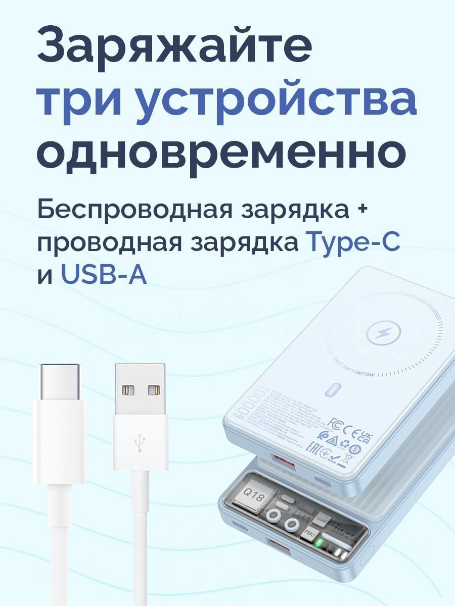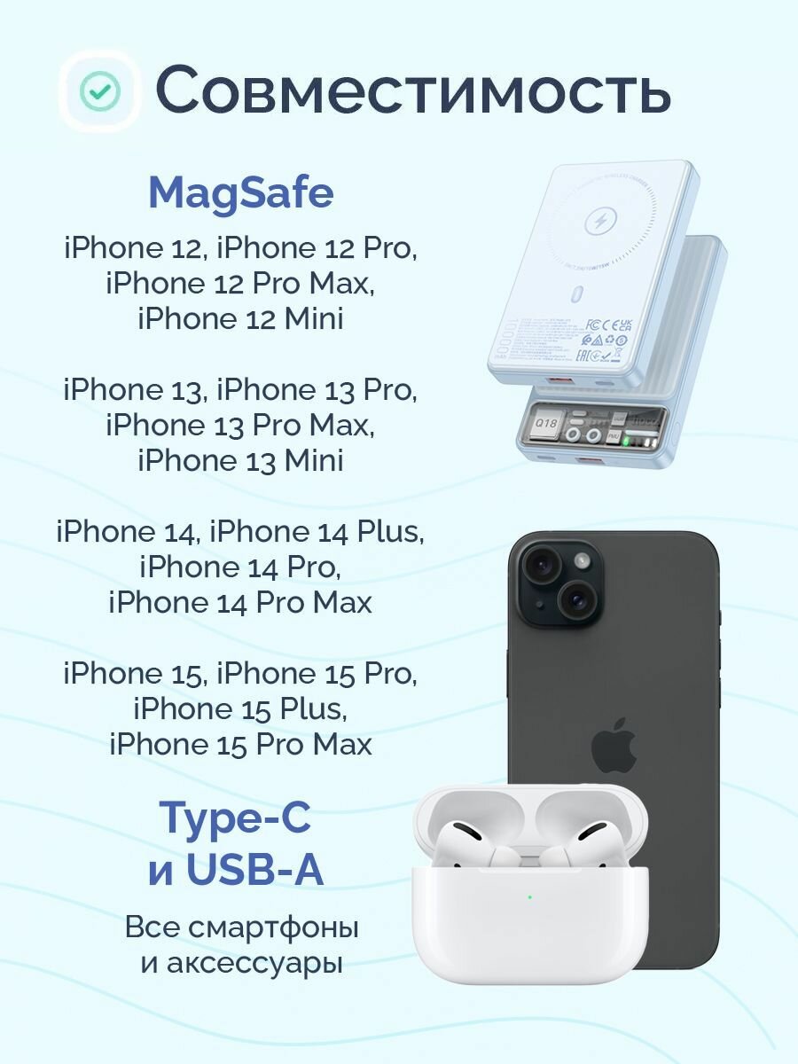 Магнитный Power Bank MagSafe с беспроводной зарядкой Hoco Q18 10000mAh Blue 2 800 ₽ Подробнее