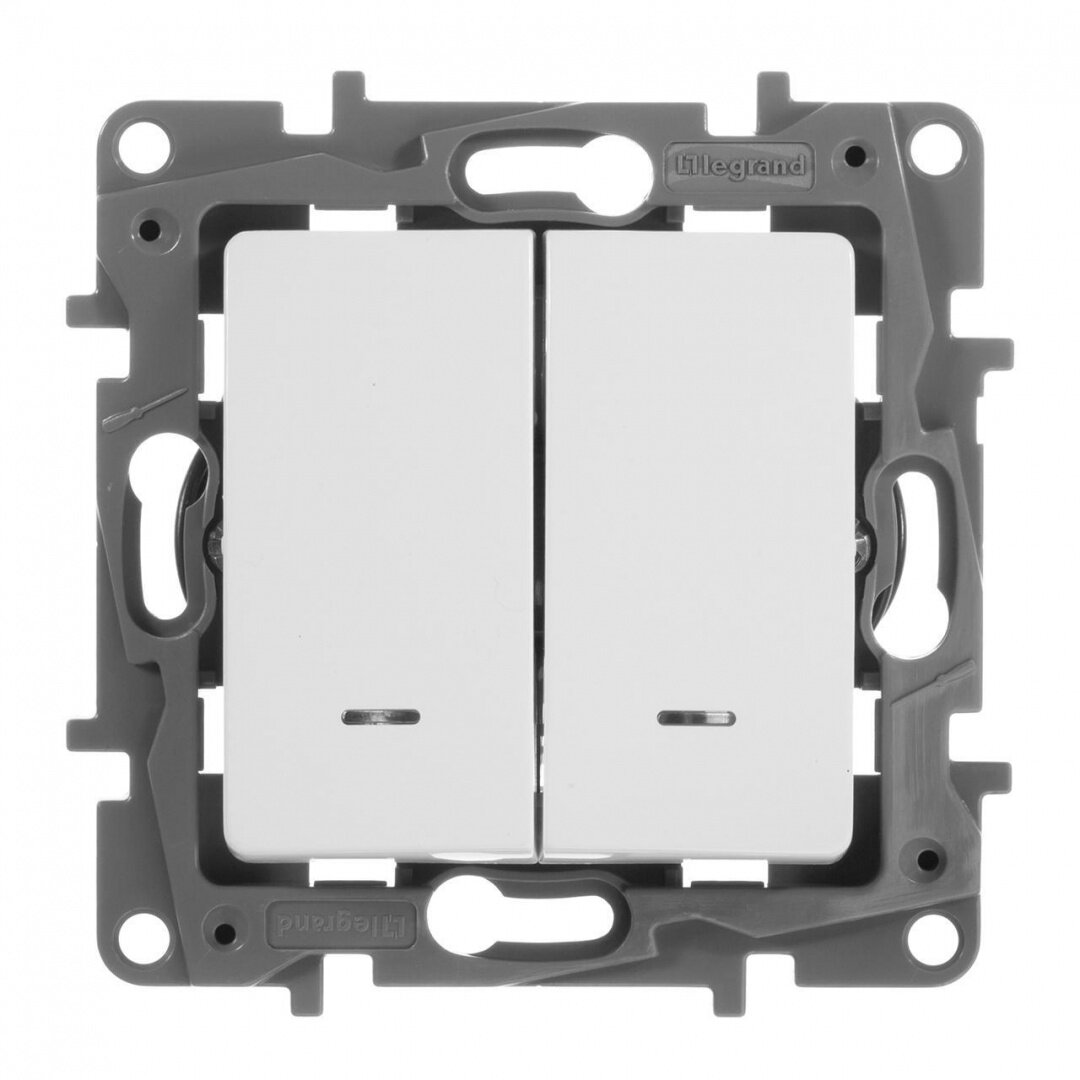 Выключатель Legrand Переключатель двухклавишный Legrand Etika с подсветкой 10A 250V белый 672216