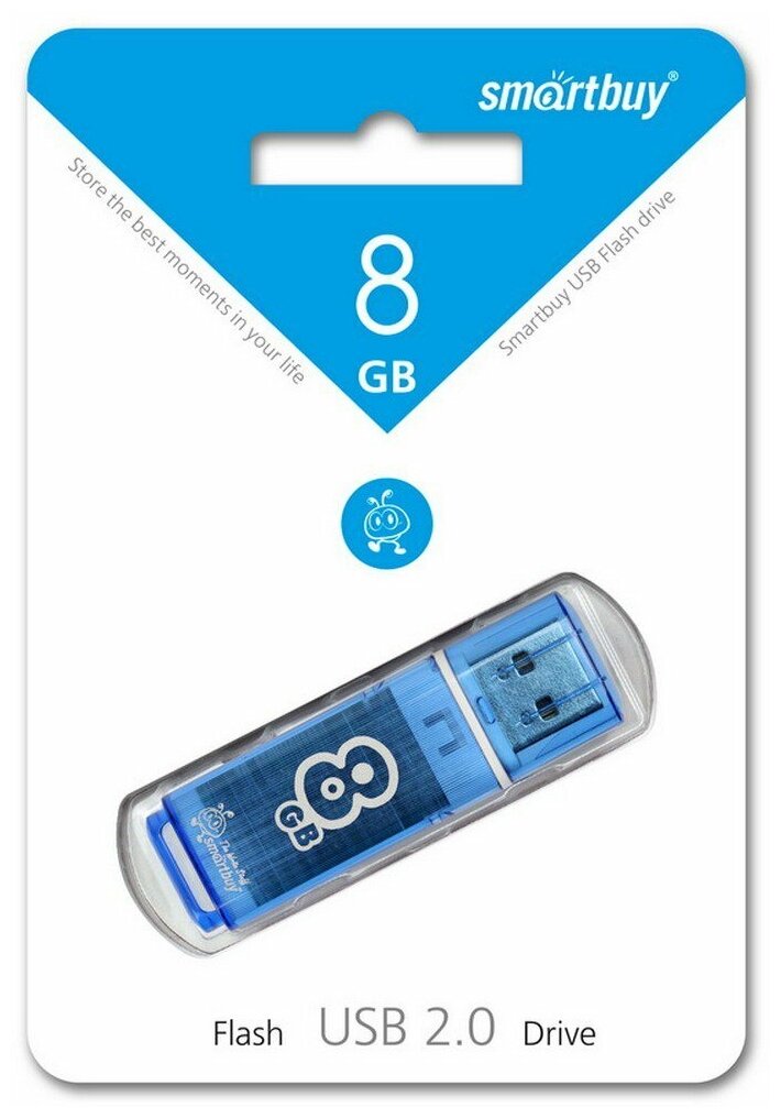 Флеш-диск 8 GB, SMARTBUY Glossy, USB 2.0, синий, SB8GBGS-B В комплекте: 1шт.