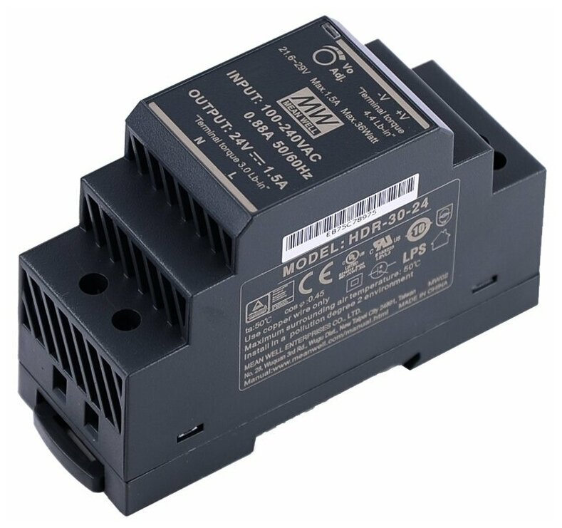 ИБП HDR-30-24 MEAN WELL Источник питания AC-DC, 24В, 1.5А, 36Вт