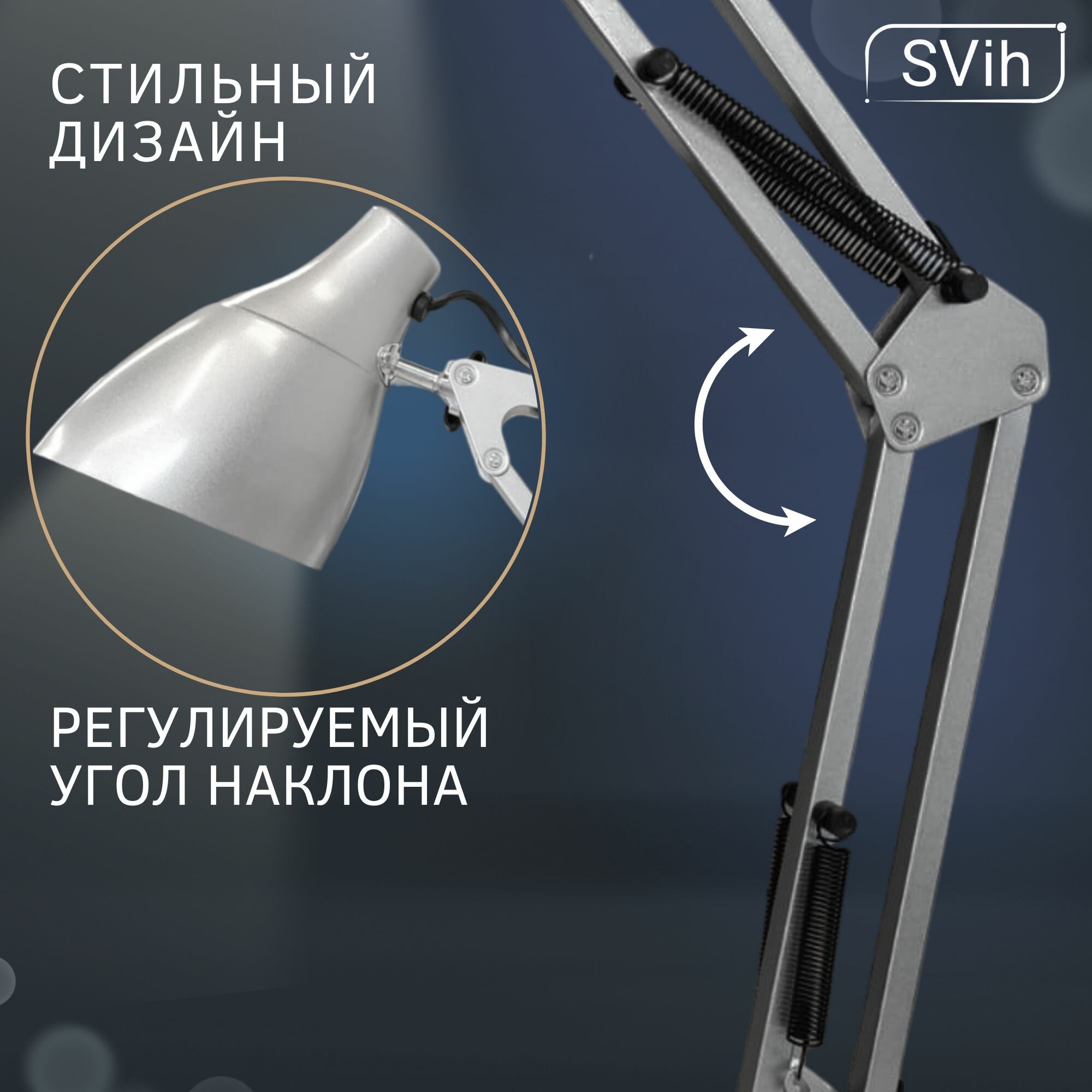 Настольные лампы Лампа SVih, струбцина, E27, 60 Вт, IP20, серебристая