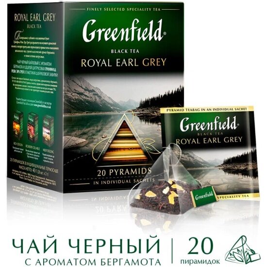 Выключатели Чай Greenfield Royal Earl Grey, черный с добавками, 20 шт, пирамидки