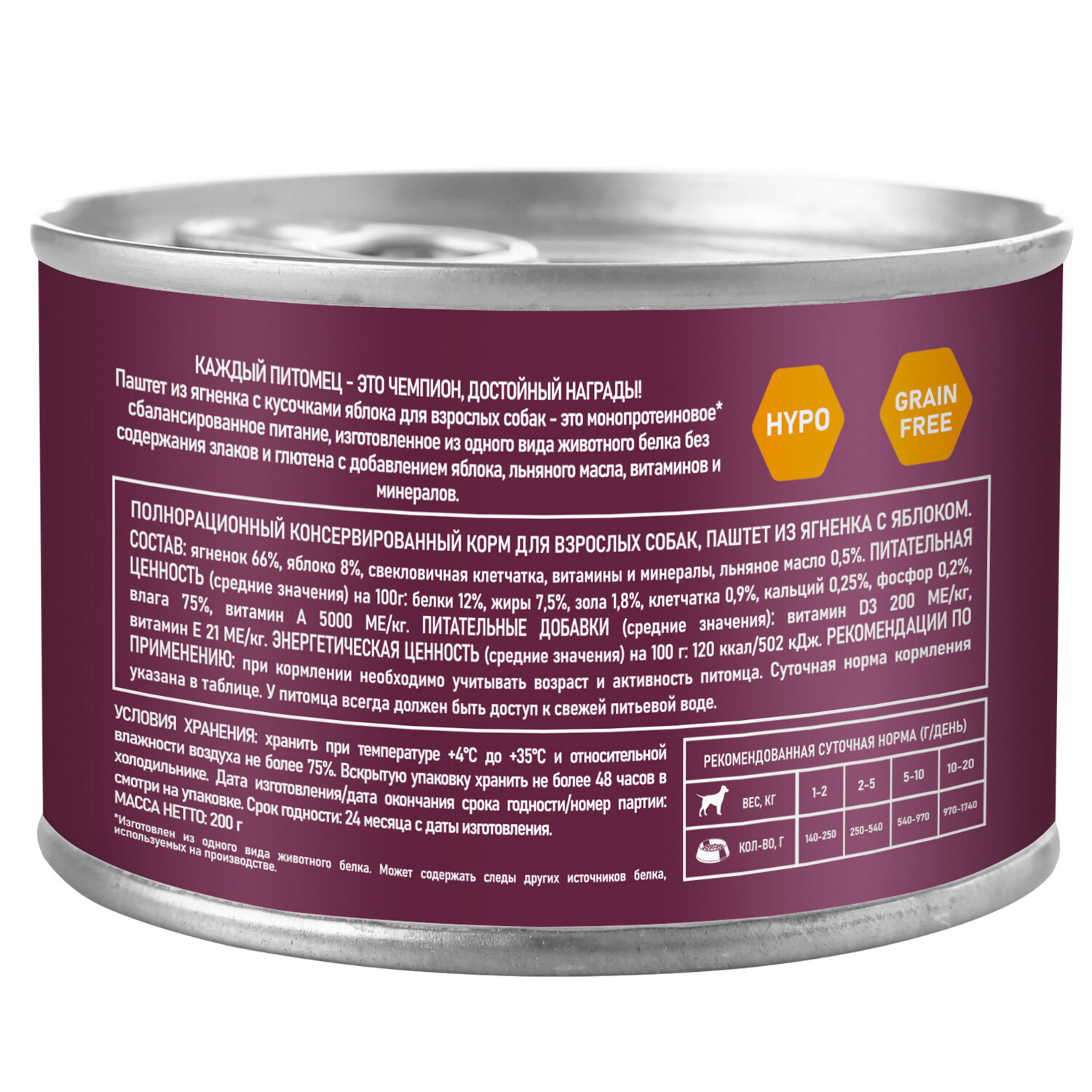 Корм для собак AWARD Adult Корм влаж.паштет из ягненка с яблоком д/собак конс.200г