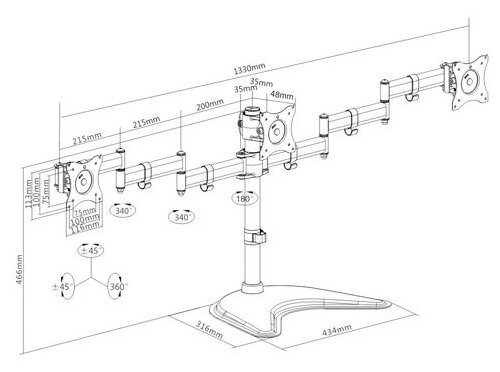 Лучшие цены. Настольный кронштейн для трех мониторов iTECHmount MBS-13M поможет быстро и надежно одновременно установить 3 монитора или телевизора на столе. Каждое посадочное место данной модели кронштейна рассчитано на мониторы и телевизоры диагональю от 13” до 27”, с максимальным весом до 8 кг каждый. 4 степени свободы, позволят регулировать угол наклона каждого монитора в диапазоне 45° вверх и 45° вниз, угол поворота экрана до 90°, а функция вращения на 360° даст возможность легко менять ориентацию положения экрана. Магазины в вашем городе.