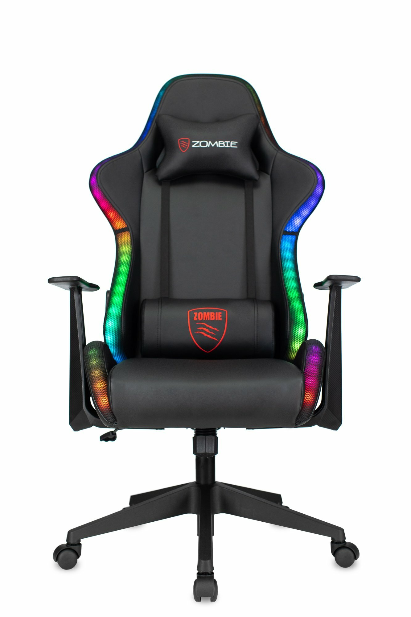Компьютерные кресла Кресло игровое Zombie GAME RGB черный [экокожа, до 120 кг, подголовник, подлокотники - нерегулируемы