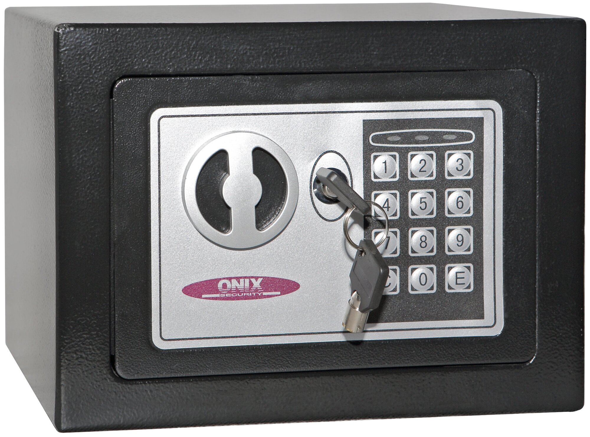 Лучшие цены. Мебельный сейф Onix KS-16 Предназначен для хранения документов и незначительных ценностей дома и в офисе. Корпус изготовлен из стального листа толщиной 2 мм, толщина лицевой панели - 4 мм. Дверь запирается электронным замком с возможностью настройки кодовой комбинации на замке от 3 до 8 цифр. Замок оснащен световым и звуковым оповещением, системой защиты от подбора кода и оборудован системой аварийного открывания, с помощью которой можно открывать сейф ключом входящим в комплект сейфа. Магазины в вашем городе.