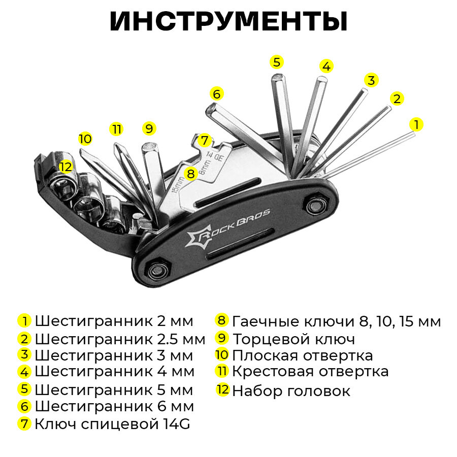 Наборы инструментов Мультитул для велосипеда Rockbros GJ1601 /16 в 1, набор ключей для ремонта, велосипедный ремкомплект, шестигранники, гаечные ключи, головки, отвертки, черный