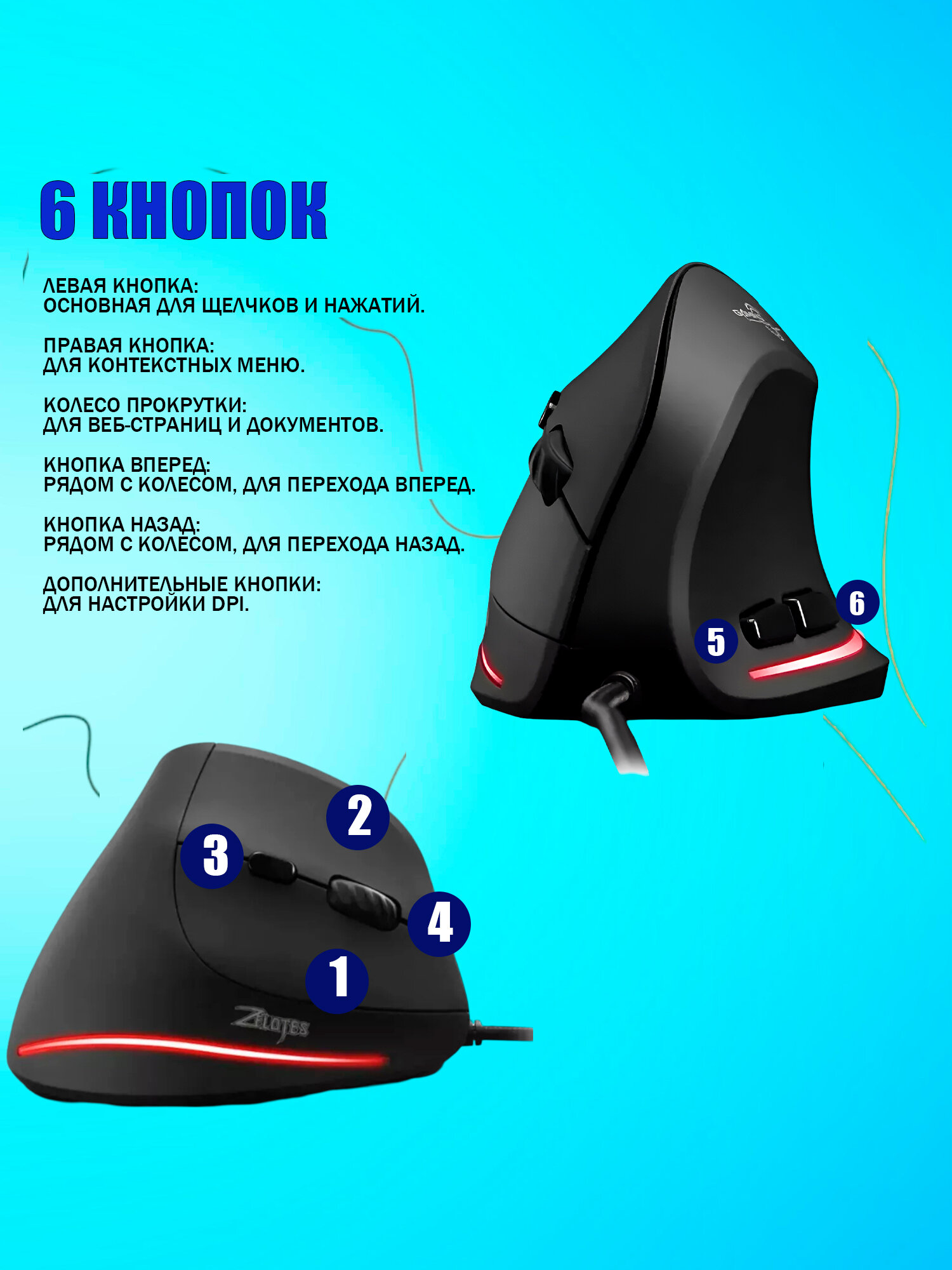 Вертикальная мышь беспроводная, ZELOTES F36, перезаряжаемая, с подсветкой RGB, для компьютера, черная 1 900 ₽ Подробнее