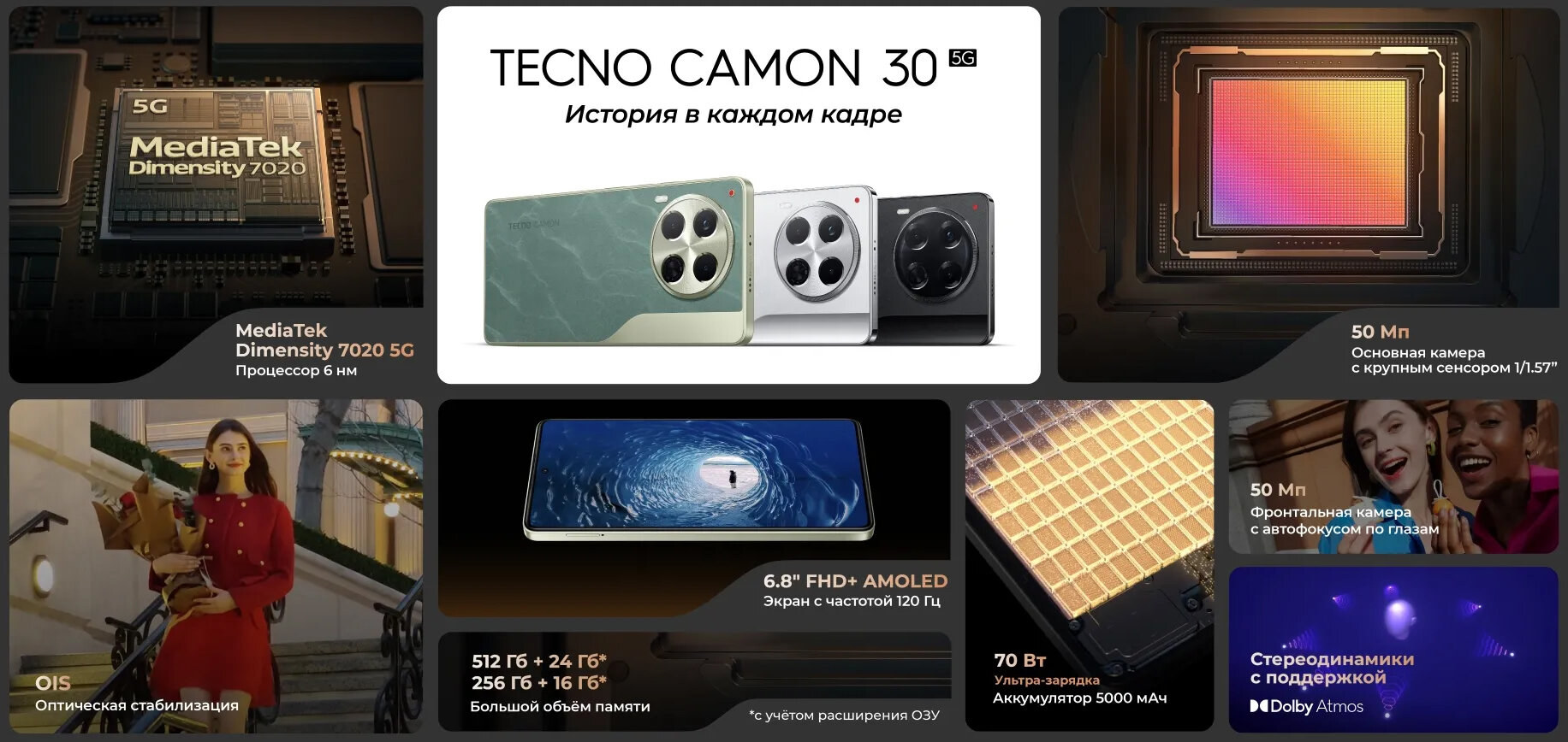 Смартфон TECNO CAMON 30 5G 8/256 ГБ, Basaltic