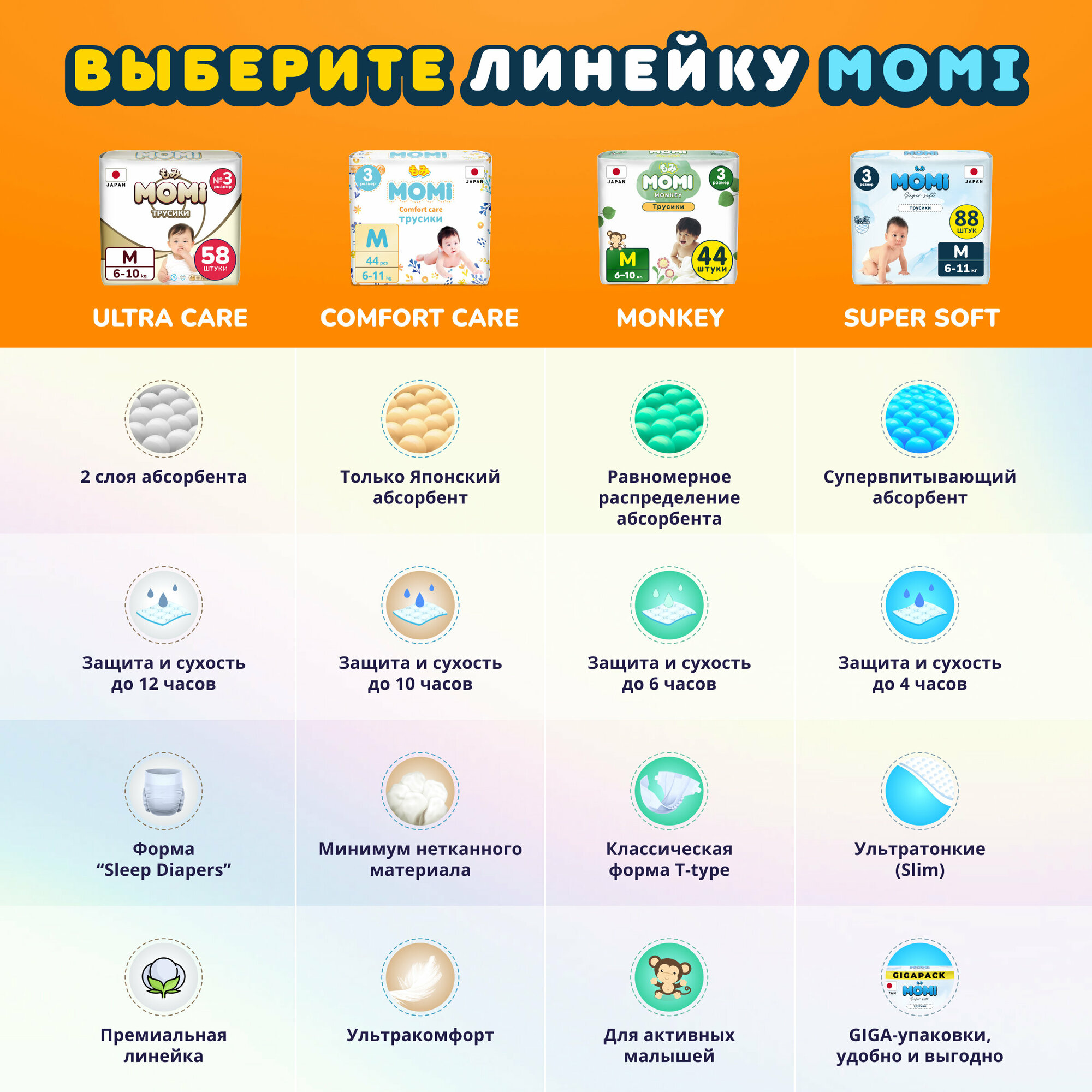 Подгузники-трусики Momi Comfort Care M (6-11 кг) GIGA, 88 шт 1 655 ₽ Подробнее