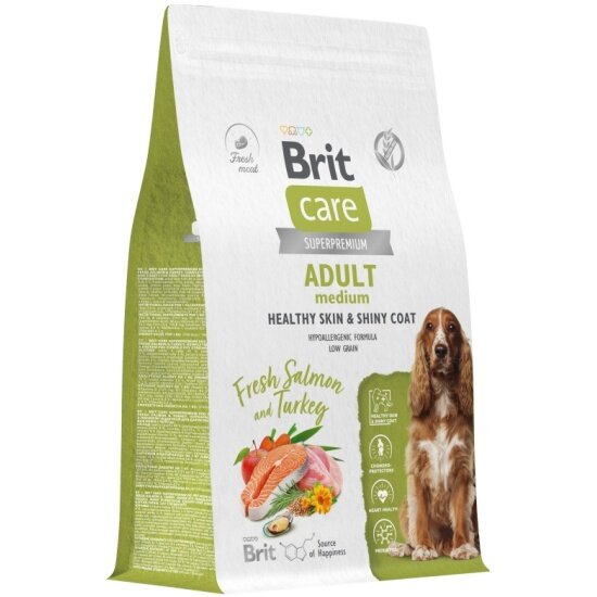 BRIT CARE DOG ADULT MEDIUM HEALTHY SKIN & SHINY COAT д вз соб ср пор при аллергии с лосос и индейкой 3 кг