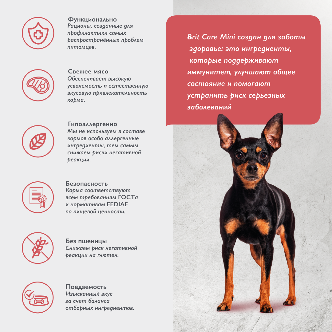 BRIT CARE MINI DOG ADULT DELICIOUS TASTE для привер взрослых собак малень пор индейка утка 0,4 кг 687 ₽ Подробнее