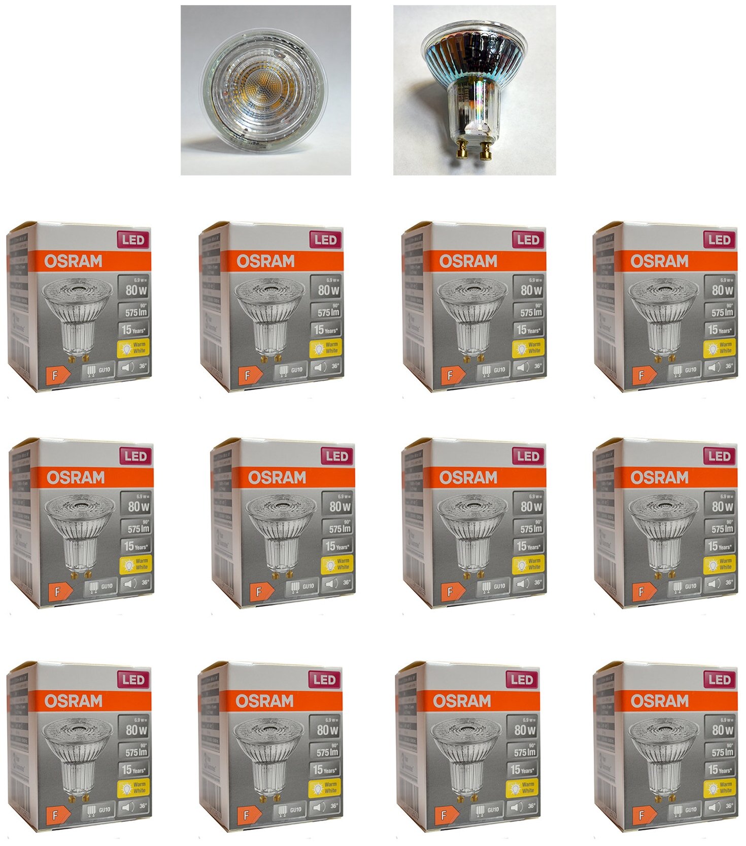 Лампочки 12шт/уп. Лампа LED Софит 6.9Вт 220-240V GU10 PAR16 575Лм 2700К Угол 36 град. D-51mm L-55mm Свет Теплый белый OSRAM, уп. 12шт