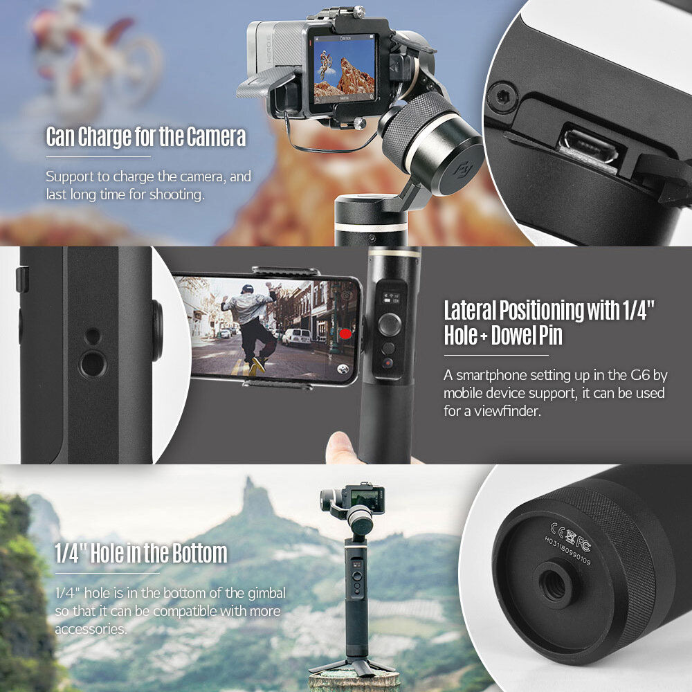 Стедикамы (ручные стабилизаторы) FeiyuTech G6 3-осевой стабилизированный брызгозащищенный портативный стабилизатор для экшн-камеры