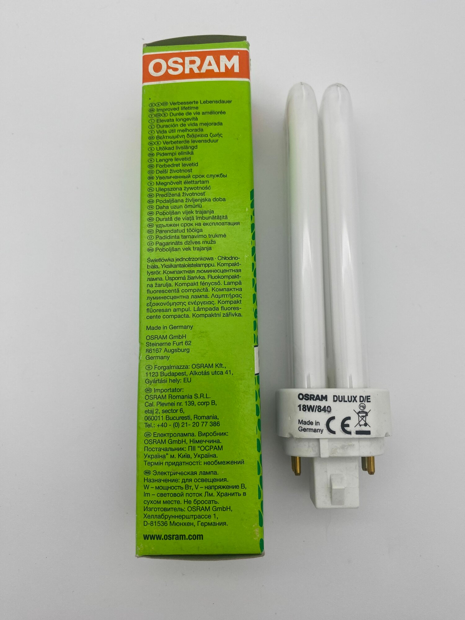 Лампочки Лампа люминесцентная OSRAM DULUX D/E 18W/840 G24q-2 (4050300017617) - 2 шт.