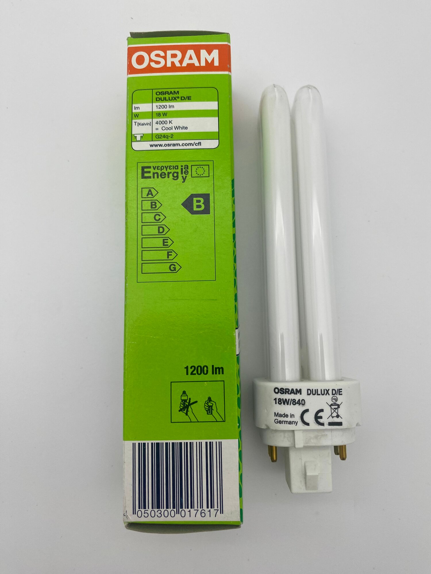 Лампа люминесцентная Osram DULUX D/E 18W/21-840 G24q-2 холодный белый 4000К, упаковка 1шт
