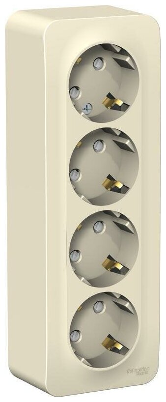 Розетка SYSTEME ELECTRIC (SCHNEIDER ELECTRIC) SCHNEIDER ELECTRIC BLANCA 4-я с заземлением, со шторками изол.ПЛ., 16А, 250В, Бежевый, BLNRA011417