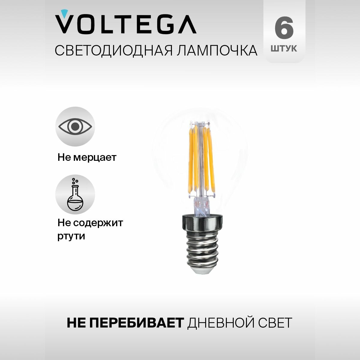Лампа светодиодная Voltega E14 6,5W 4000K прозрачная VG10-G45E14cold9W-F 7137
