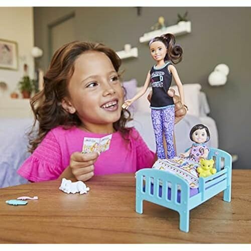 Куклы Barbie GHV88, Skipper Babysitters Inc. Игровой набор для сна с куклой Скиппер, малышом и аксессуарами, игрушка от 3 лет