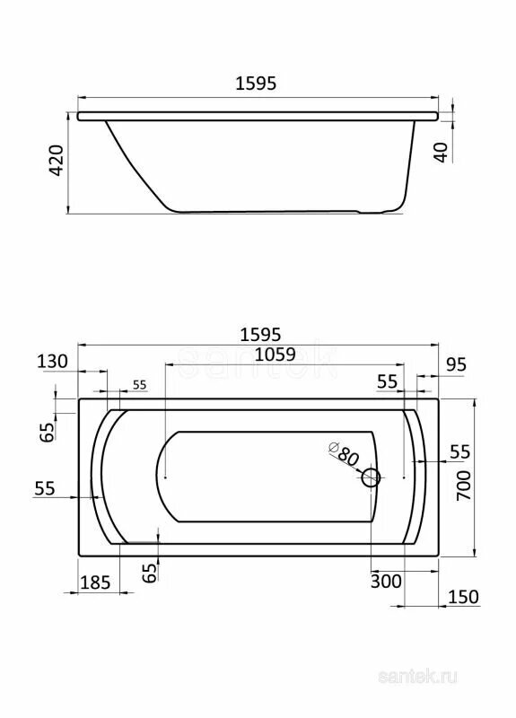Ванна прямоугольная Santek акриловая монако 1500х700 белая арт. 1WH111976 15 347 ₽ Подробнее