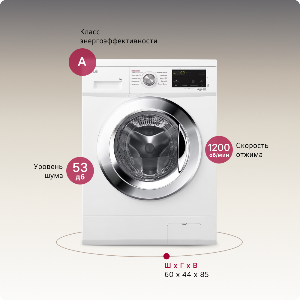 Стиральная машина LG F2J3NS2W белый корпус, фронтальная загрузка до 6кг