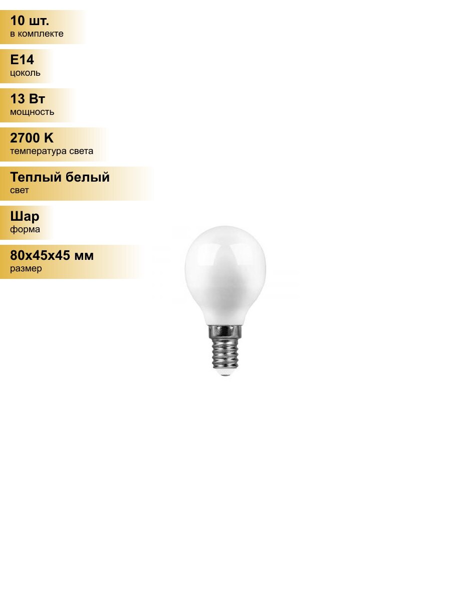 Лампочки (10 шт.) Светодиодная лампочка Saffit шар G45 E14 13W(1070Lm) 2700K 2K матовая 80x45 SBG4513 55157 Теплый белый. Цоколь E14