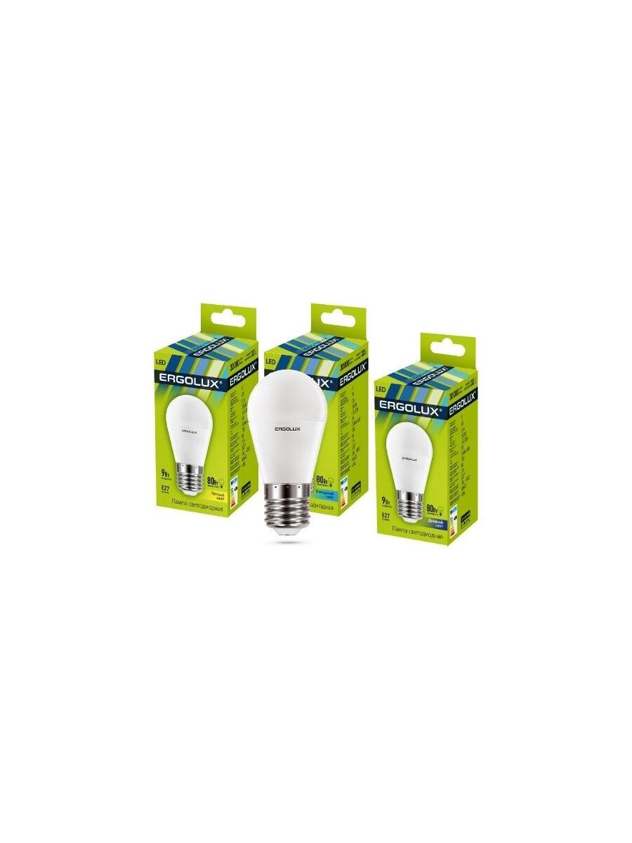 Электрическая светодиодная лампа Ergolux LED-G45-9W-E27-6K Шар 9Вт E27 6500K 172-265В 13178