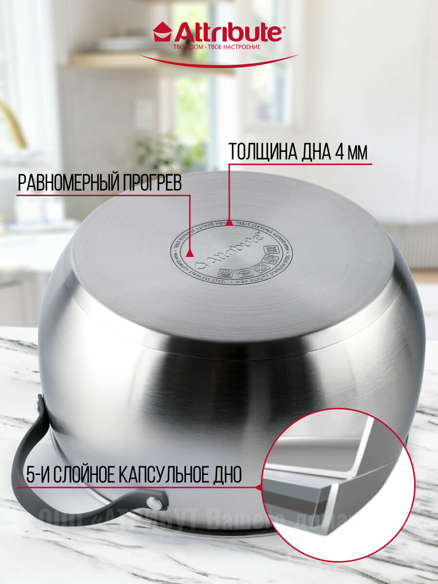 Кастрюля ATTRIBUTE Symphony 6,2л 24см нерж.сталь стеклянная крышка индукция